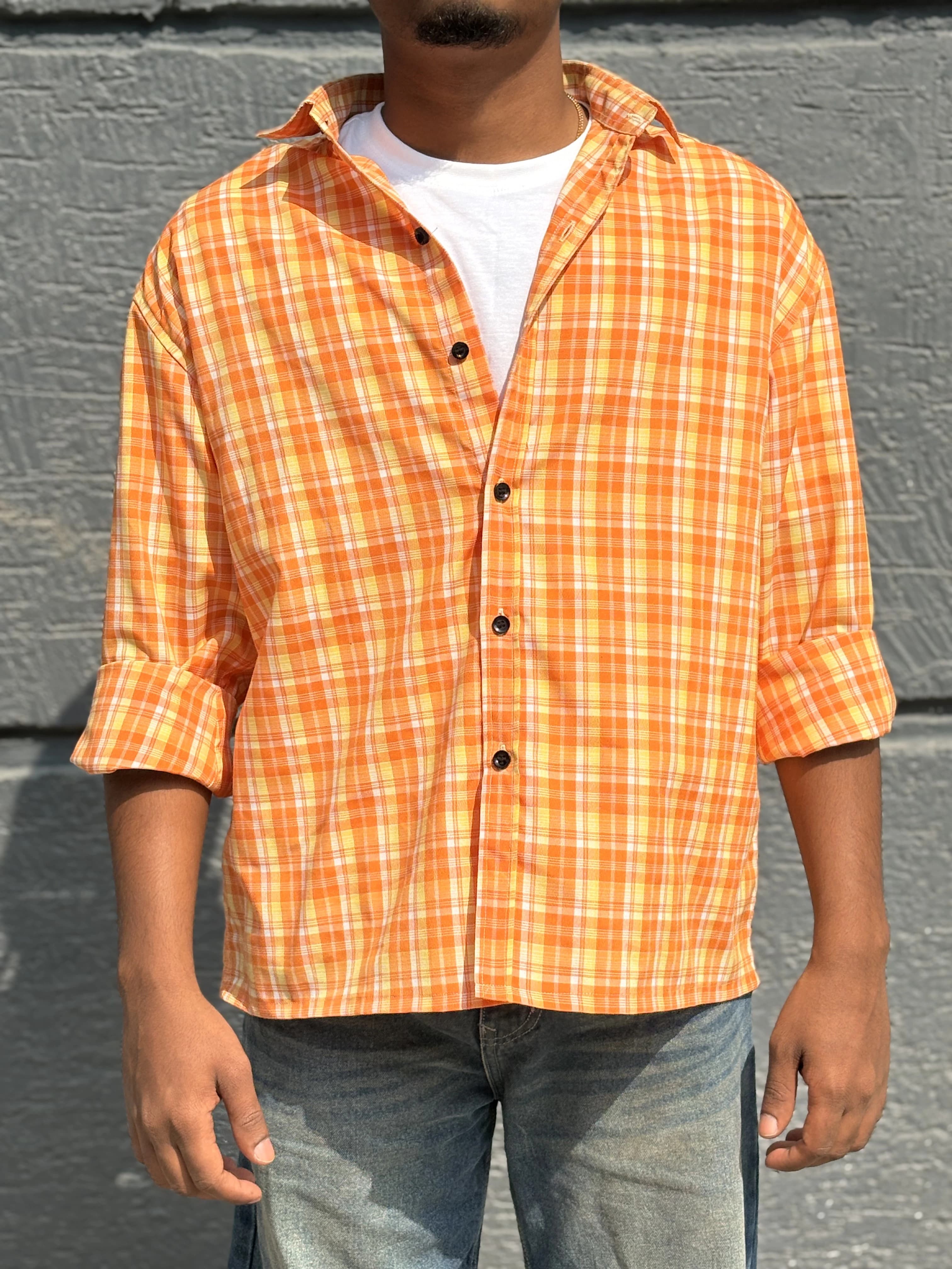 Timeless checks with a fresh, everyday feel. This orange checked cotton shirt is designed for comfort and versatility, featuring a classic check pattern that never goes out of style. The full sleeves and relaxed structure make it perfect for casual outings, weekend wear, or easy layering. Pair it with denim or chinos for a clean, effortless look.
