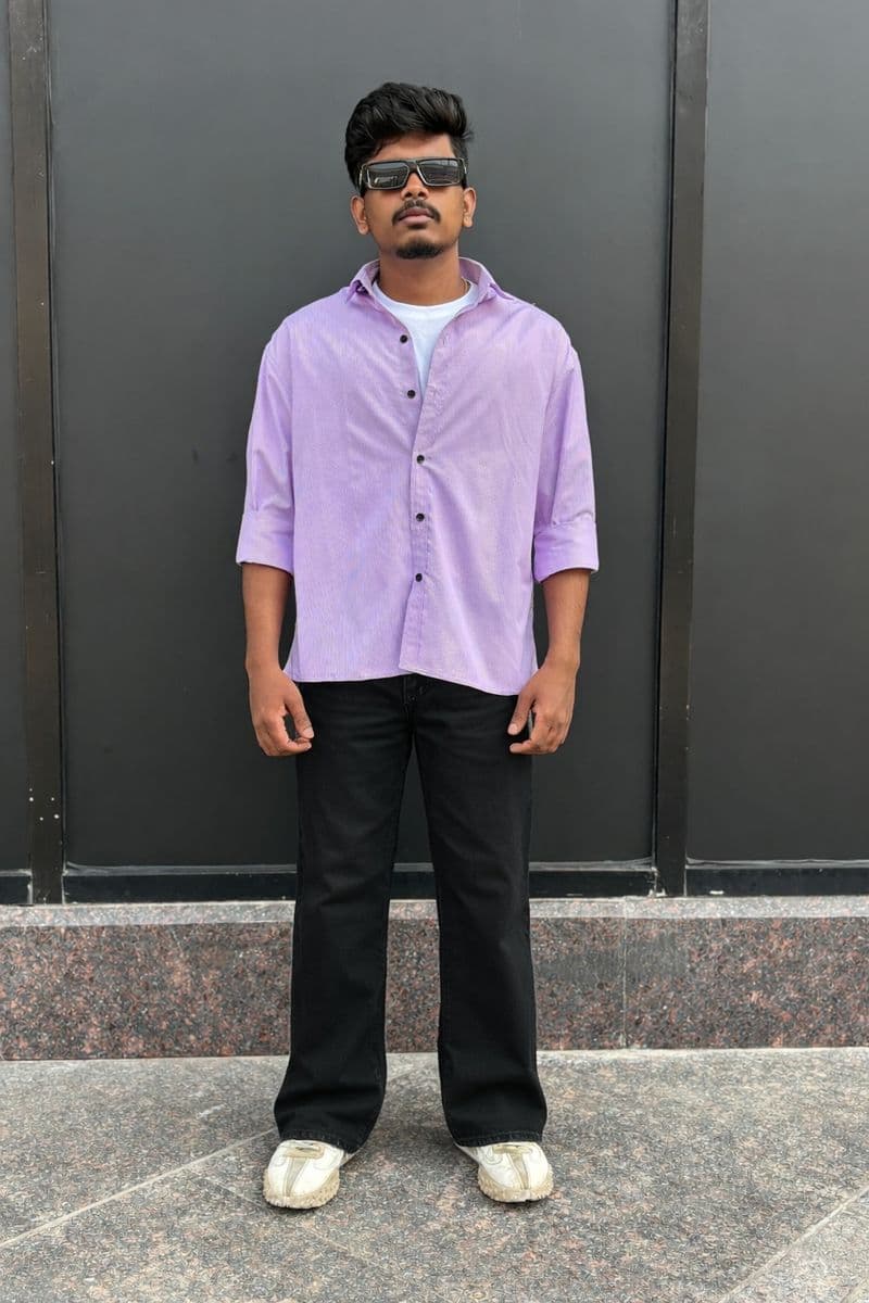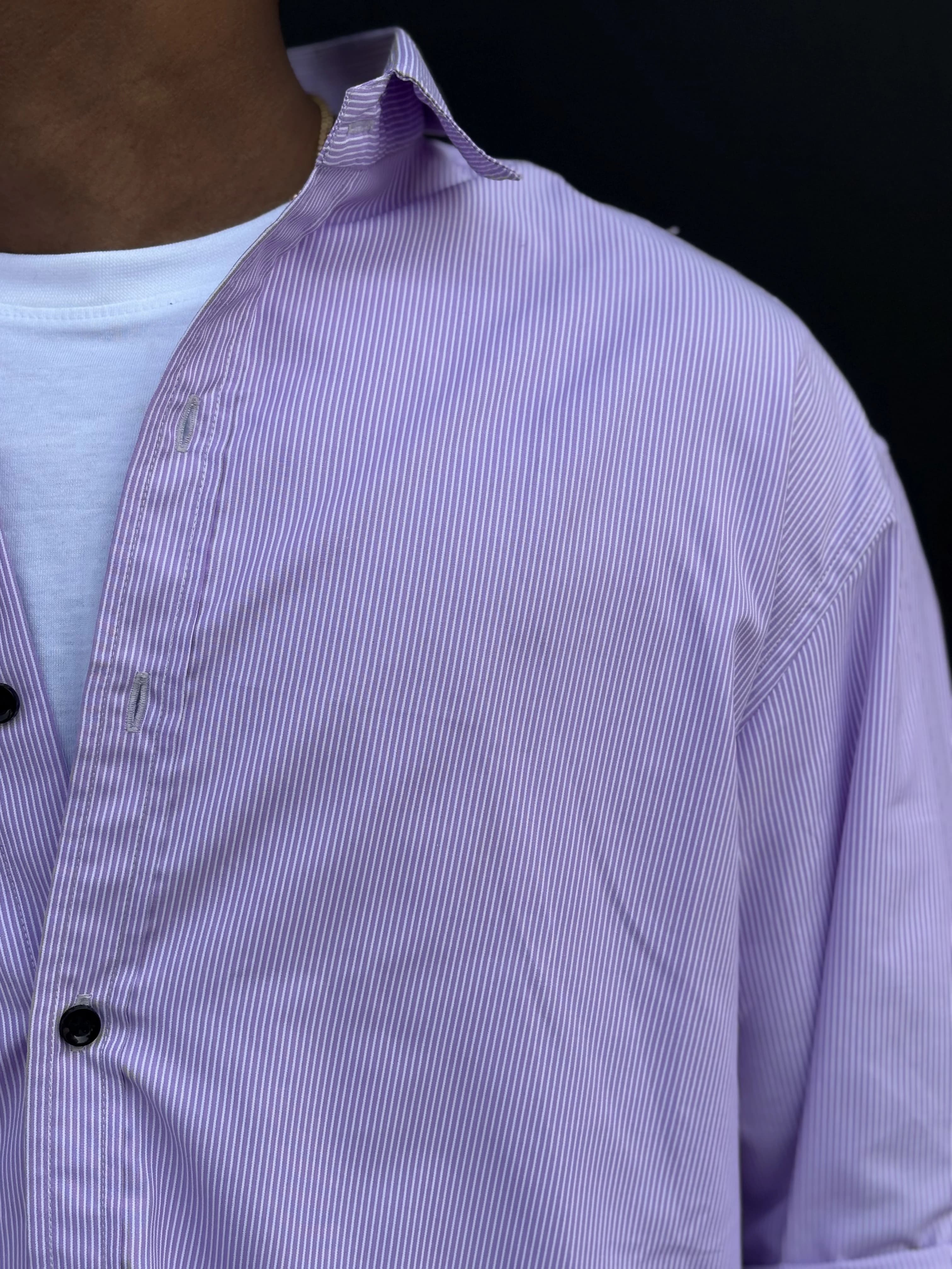 Fresh, easy, and effortlessly stylish. This lavender striped cotton shirt is designed for laid-back days and elevated casual looks. The subtle vertical stripes add texture without overpowering the outfit, while the relaxed silhouette keeps it comfortable and breathable. Pair it with jeans, trousers, or layer it over a tee for a modern street-casual look.